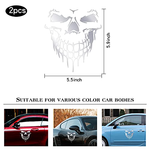 Blinglife 2 PCS of Reflective Skull Car Sticker Decals,Hallowmas Colorful Cartoon Waterproof Self Adhesive Vinyl Car Exterior Accessories, Suitable for Car Hoods, Doors, Bumpers, DMTH001-silver