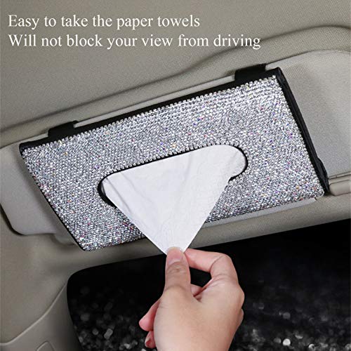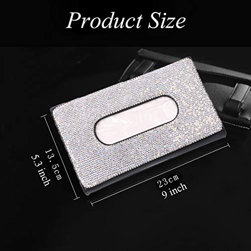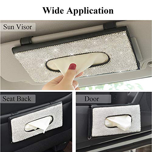 【Premium Quality】Our car tissue holder bling is made of PU leather with faultless sewing, which is durable and sturdy. The rhinestone on it makes it fashionable and special. And it will not block your view from driving.
