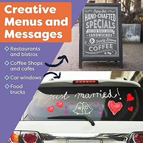 Ideal for decorating any window, bistro board, or even back to school sign, these erasable chalkboard markers not only work on chalkboards, but also glass, ceramic, whiteboards, and more!