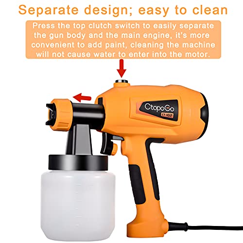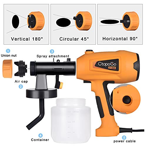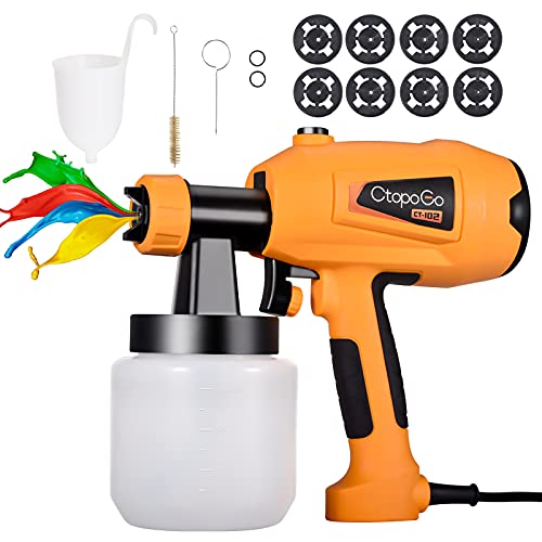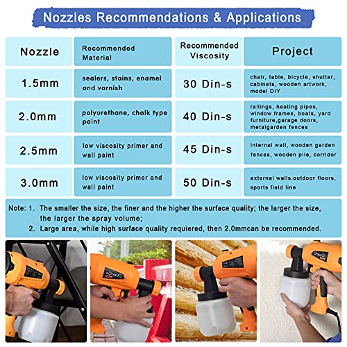 【3 Spray Patterns & 8 Nozzles】– Can do 3 different spray patterns :horizontal, vertical and circular. CtopoGo sprayer gun includes 8pcs nozzles(sizes 1.5mm*2Pcs /2.0mm*2Pcs/2.5mm*2Pcs/3.0mm*2Pcs) for most painting projects such as painting tables, chairs, fences, car, interior walls or crafts etc. WARM NOTE: one nozzle was already installed in the gun upon receiving.