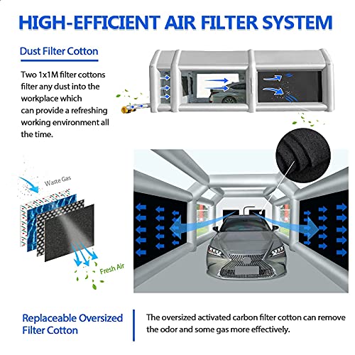 đăMore effectively to remove the oversprayăThis inflatable paint booth is equipped with OVERSIZED filters and two POWERFUL blowers, which has better ventilation to remove the odor and paint smell. The filter cotton is also replaceable, if you want to replace it, please directly email to us or buy it through our store.