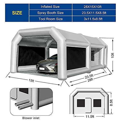 Inflatable Paint Booth 28x15x10Ft Portable Paint Booth with Two 950W Blowers Professional Inflatable Spray Booth, Car Painting Tent for Cars, Auto Parts and Other Items Painting