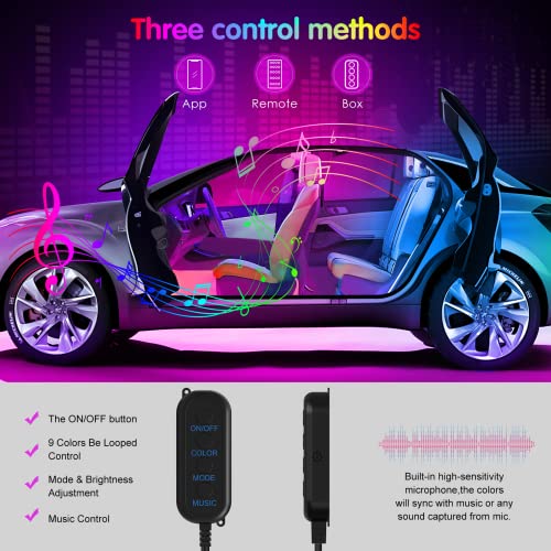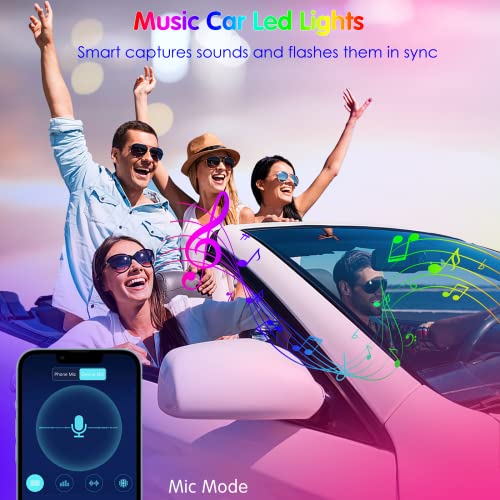 Music Sync: Music mode and mic mode enable led car lights to synchronize music within the smart APP, and also synchronize outside sounds through the sensitive microphone, the light will change automatically with the rhythm of music or sound to enhance your driving pleasure