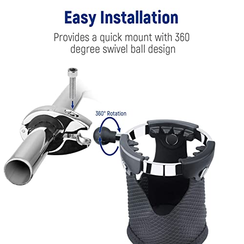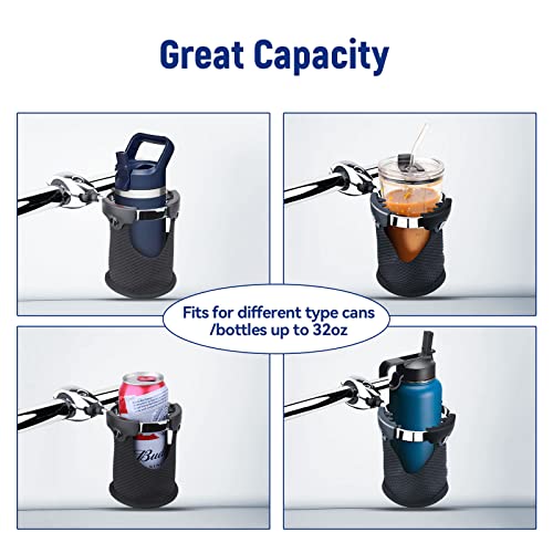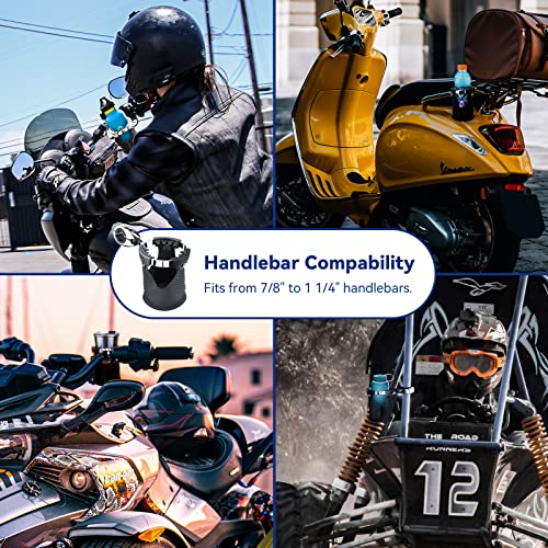 Great Handlebar Compability: This motorcycle drink holder can fits handlebars from 7/8” to 1 ¼” in diameter with different spacers included. It is suitable for most Harley Davidson motorcycle, ATV/UTV, Scotter, Can-Am, Yacht, Bicycle etc.