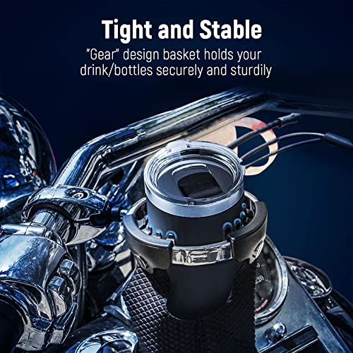 “Gear” Design Basket: This motorcycle cup holder can hold your drink and bottles sturdily and securely to prevent it from spilling or falling during the riding.