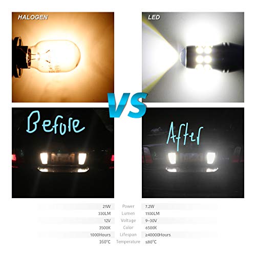 ✔【Super Bright & Low Power】(Set of 2 bulbs,6500K,Xenon White) 921 3030 20-EX Chipsets LED Bulbs,1100 Lumens&7.2W Per Bulb,Much Brighter Than Original Bulb.