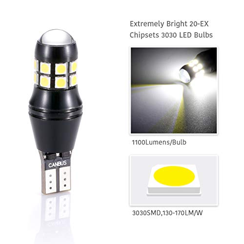 LUYED 912 921 LED Bulbs Reverse Lights Xenon White 2200 Lumens Extremely Bright Canbus Error Free W16W T15 906 3030 20-EX Chipsets with Lens for Tail Backup Lights, Pack of 2