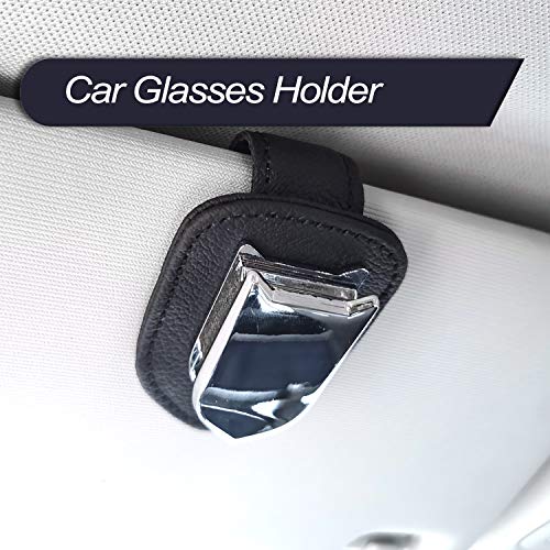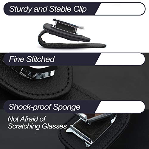 MECHCOS 2 Packs Car Glasses Holder Universal Car Visor Sunglasses Holder Clip, Leather Eyeglasses Hanger Ticket Card Clip Mount for Car Interior Accessories(Black)