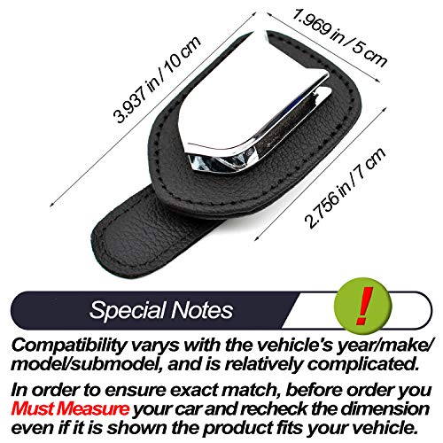 2 pack car visor sunglasses leather and metal clip holder fit for most of the car suv trcuk van rv. 1 for your sunglasses and the second one for hanging other small stuffs like ticket, card.