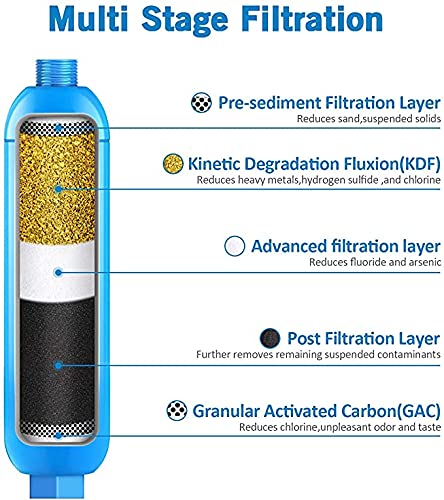 [High-quality Materials]:Lifefilter inline RV water filter is uses advanced Granular Activated Carbon GAC and Kinetic Degradation Fluxion (KDF), it can effectively chlorine, bad taste, odor and sediment to ensure that you can always enjoy refreshing and tasty filtered water. The micron rating is 20 microns.
