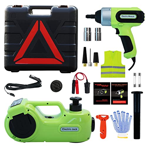 Simtamy Electric Car Jack Kit 5 Ton 12V Hydraulic Jack with Electric Impact Wrench and Tire Inflator, Portable Emergency Car Lift Tire Change Tools