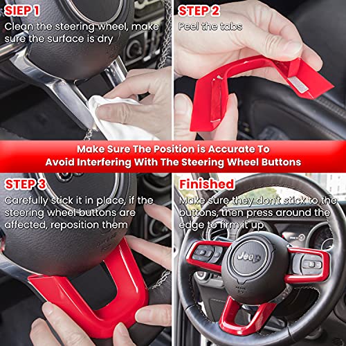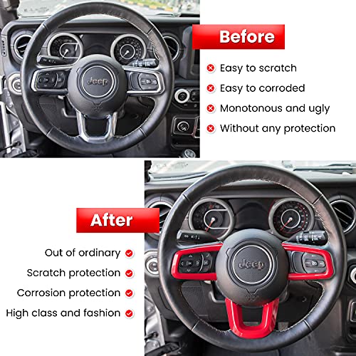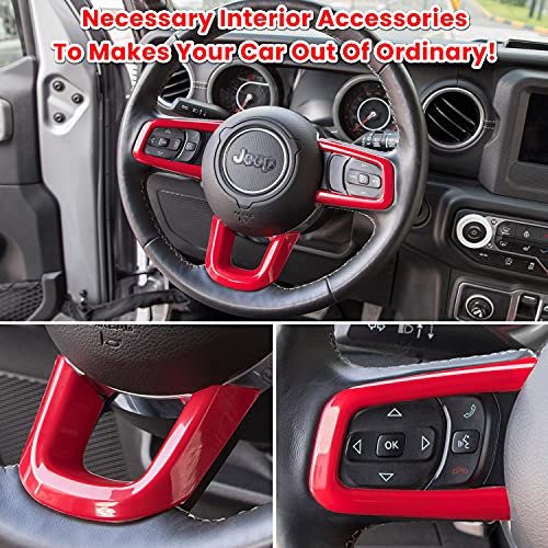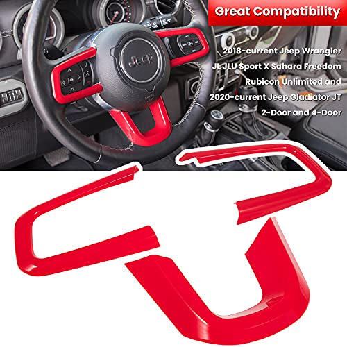 E-cowlboy Steering Wheel Cover Trim Interior Accessories Decoration Kit for 2018-2022 Jeep Wrangler JL JLU Unlimited Sports Freedom Sahara Rubicon Gladiator JT 2-Door & 4-Door (Red 3PCS)