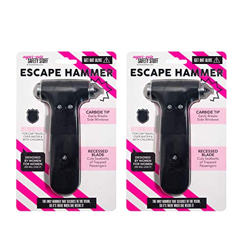 Super-Cute Safety Hammer – Emergency Automotive Escape Hammer Tool, Seat Belt Cutter & Car Window Break Tool – Black, 2 Count