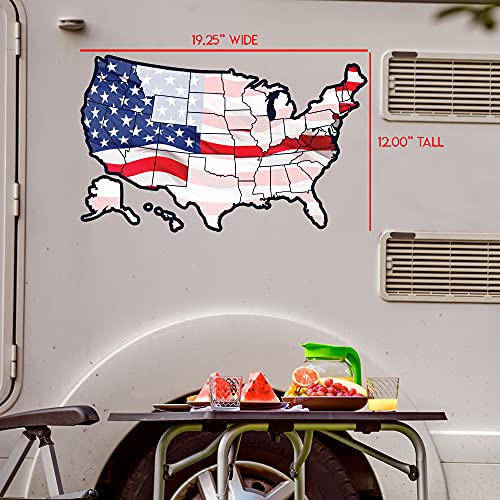 Travel State Sticker Map RV Gifts – Road Trip Essentials for Adults, United States Map, Flag 19.25” x 12” Fun RV Decals, Camper Gifts, Cool Camper Accessories, Visited States Map.