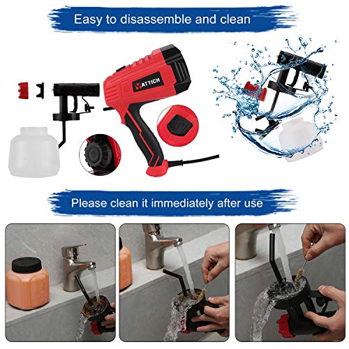 【Perfect Design For User Experience】Detachable, making it easier to use and clean; the paint output can be controled by adjusting the flow control knob on the sprayer to obtain different paint output; The 6.6ft power cord is long enough to allow you to move freely within a larger work area.