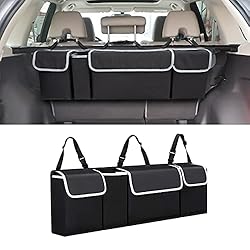 Car Trunk Organizer and Storage, Backseat Hanging Organizer for SUV, Truck, MPV, Waterproof, Collapsible Cargo Storage Bag with 4 Pockets, Car Interior Accessories for Men and Women (Black)
