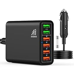 Multi Ports USB Car Charger, 96W 6 Port QC3.0 Fast Adapter Multiple Ports, with Four Quick Charge 3.0 Port, 12V-24V Multi Device Cigarette Lighter for Smart Phone & Tablets Charging
